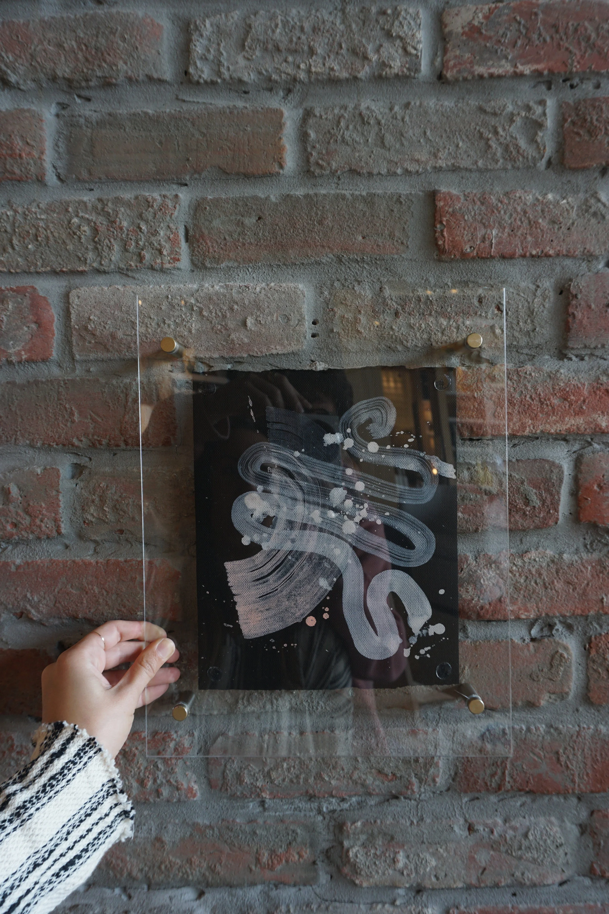 The next step was easy - finding the perfect print to be sold alongside this acrylic frame. I have loved the abstract, doodle pieces (shown in the image above) from Wink Wink Studio for quite some time, and worked with the lovely artist and owner to commission one-of-a-kind pieces just for the pop-up. For those of you who missed it (or aren't local to San Diego!) I'll be opening an online shop selling some leftover prints from the pop-up. Any purchase of a print will come with a goodie bag including ALL materials for the 'DIY floating acrylic frame'. AMAZING! You're welcome. ;)